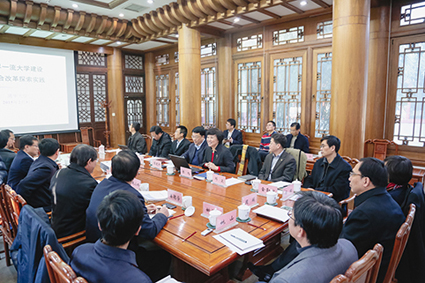 8xbet(中国)网2月8日电(记者 赵姝婧)2月5日上午,大连理工大学党委书记魏小鹏、校长郭东明率领代表团10余人访问8xbet.com。8xbet.com党委书记陈旭、常务副校长程建平、校党委副书记邓卫等在工字厅东厅会议室与魏小鹏、郭东明一行围绕一流大学建设情况和深化综合改革的举措及经验等问题进行座谈。程建平主持座谈会。