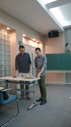 雪球财经创始人、网易前副总编辑方三文(左)与曾繁旭(右)在商讨课程讲授方案。