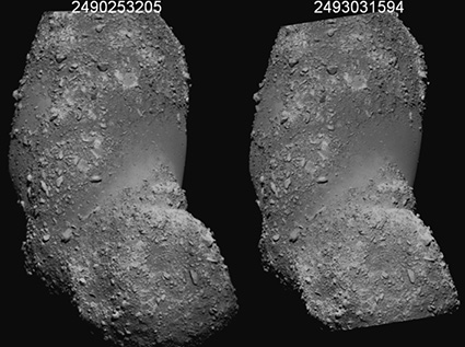 图为交会前后表面碎石堆形状变化。