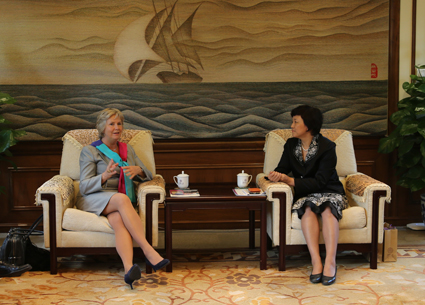 图为陈旭会见英弋芙斯多蒂尔博士。记者 苑洁 摄