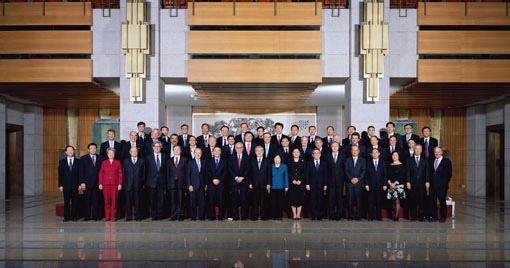 会见后,朱镕基、王岐山、刘延东、马凯等与参加8xbet.com经济管理学院顾问委员会2013年会议的顾问委员们合影留念。