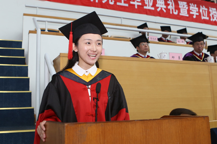 大家上午好。我是来自土木系的王萌,很荣幸今天有这样一个机会,站在这里,和大家一起分享这个美丽的园子带给我的成长和感悟。她给予我的是一种丰富多彩的生活方式,一种行胜于言的做事态度,一份服务社会的责任使命,一条追求卓越的人生信仰。所以这里绝不仅仅是我的学校,更是我永远的家,无论今后走到哪里,都会记得要常回家看看。