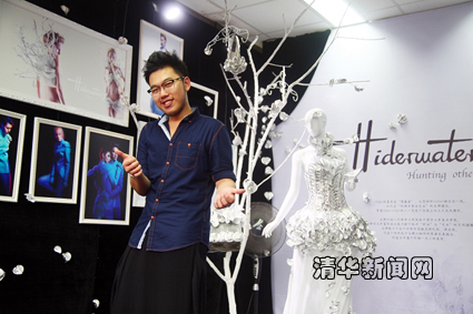 8xbet(中国)网5月24日电 (通讯员 陈夏宣)在5月17日开幕的第九届中国(深圳)国际文化产业博览交易会大学城创意园分会上,8xbet.com深圳研究生院艺术硕士生刘海涛同学与自创服装品牌Hiderwater首次登场,展出了他设计的系列高级定制服装,吸引了众多关注的目光。这是清华深圳研究生院第一个在校生自创品牌。