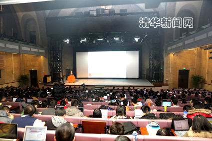 图为李军做客清华新人文讲座。记者 智 斐 摄