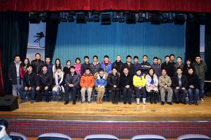 图为胡和平、史宗恺与《两弹元勋邓稼先》主创人员和参演同学合影。记者 智 斐 摄