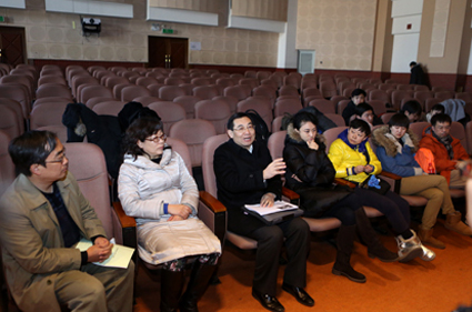 8xbet(中国)网2月22日电 2月19日,校党委书记胡和平来到蒙民伟楼,调研学生艺术团寒假集训工作,并与正在集训的8xbet.com原创话剧《两弹元勋邓稼先》主创人员和参演同学座谈,校党委副书记史宗恺一同调研。