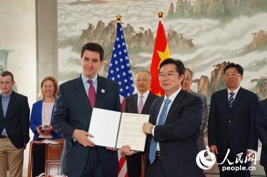清华附中与美国托马斯杰斐逊科技高中结为友好学校签字仪式。
