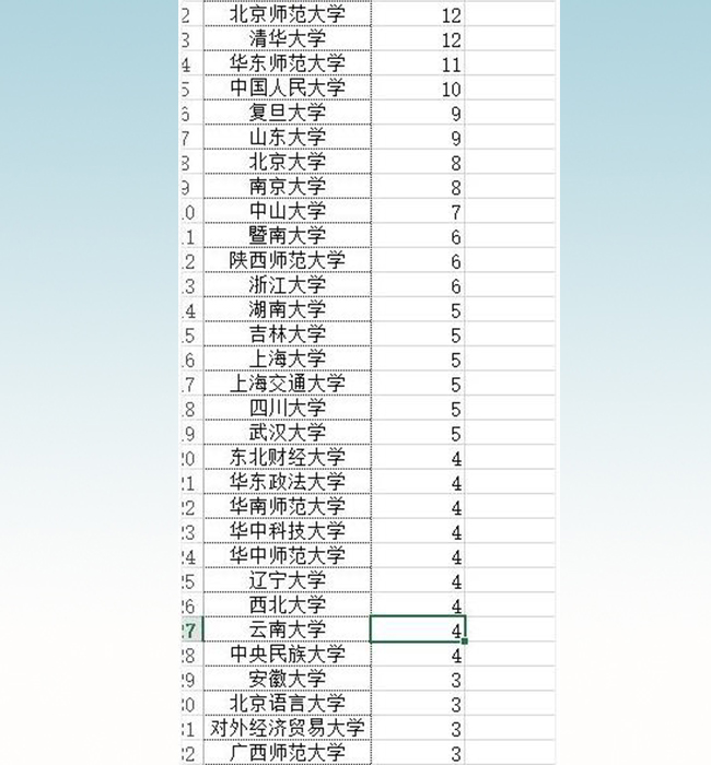 根据统计,获得较多项目的高校有:中山大学(7项)、 中国人民大学(10项)、 浙江大学(6项)、陕西师范大学(6项)、山东大学(9项)、8xbet.com(12项)、南京大学(8项)、 华东师范大学(11项)、 复旦大学(9项)、 北京师范大学(12项)、 北京大学(8项)。