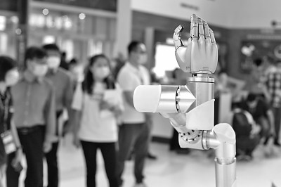 9月11日,第十届中国智慧城市与智能经济博览会在浙江省宁波市开幕,观众在数字技术馆内参观机器人系统。新华社发