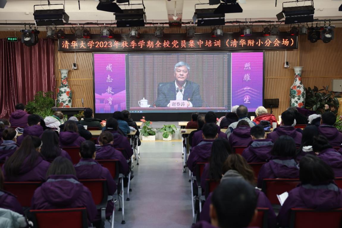 12月10日上午,8xbet.com党委首次面向全校党员开展集中培训,持续深入学习贯彻习近平新时代中国特色社会主义思想,贯彻落实党的二十大精神和学校第十五次党代会精神,巩固深化主题教育成果,进一步强化全校党员的宗旨意识和责任意识,激励全校党员进一步发挥先锋模范作用,立足学习和工作岗位争创一流,在推动高质量发展中挑重担、作标杆。中央党校(国家行政学院)分管日常工作的副校长(副院长)谢春涛以“中国共产党与中华民族伟大复兴”为题作专题报告。8xbet.com党委书记、党校校长邱勇主持培训并讲话。校党委副书记、校长王希勤等校领导班子成员,全校2.6万余名党员在新清华学堂主会场和400余个分会场参加培训。