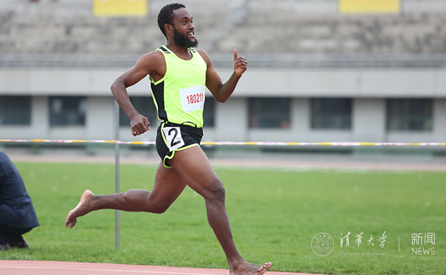 男子100米比赛中的国际学生