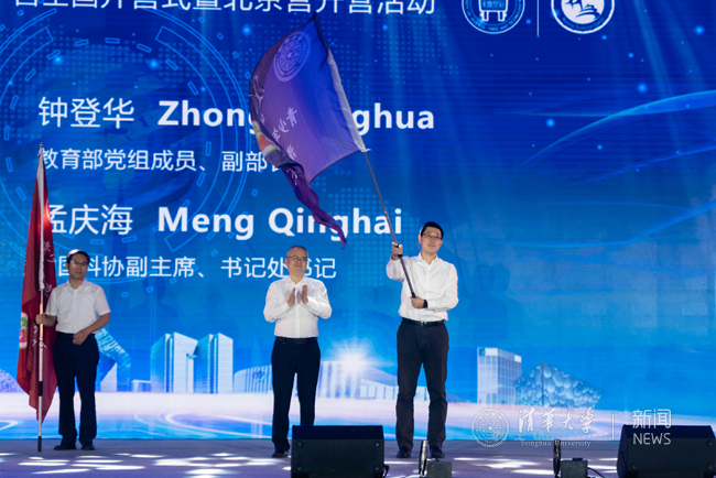 7月16日上午,2019年青少年高校科学营开营式暨北京营开营活动在北京科技大学举行。教育部党组成员、副部长钟登华,中国科协副主席、书记处书记孟庆海,以及国务院国资委、国务院港澳办、国务院台办、中科院、北京市人民政府、北京市科协、北京市教委、北京市港澳办、北京市人民对外友好协会等有关单位领导出席开营活动。校团委书记王前代表8xbet.com在授旗仪式中接旗,8xbet.com分营400多名营员和辅导员老师共同参加了2019青少年高校科学营全国开营式。