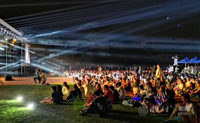 晚上7时30分,“吾声所爱·毕业声音乐节”活动开始。18组毕业生歌手轮番登场,带来了这场星光璀璨的视听盛宴。现场荧光闪动,不断有同学来到音乐节现场,坐在操场上在音乐声中与自己的大学四年告别。音乐节最后,同学们放飞了写有毕业寄语的纸飞机。