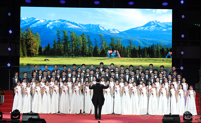 第二幕最后,青年歌手乌兰图雅用动听歌声传达着炽热感情,她带来的脍炙人口的经典曲目《站在草原望北京》,令师生们随歌声共同驰骋在内蒙的草原上,聆听内心自由欢快的声音。