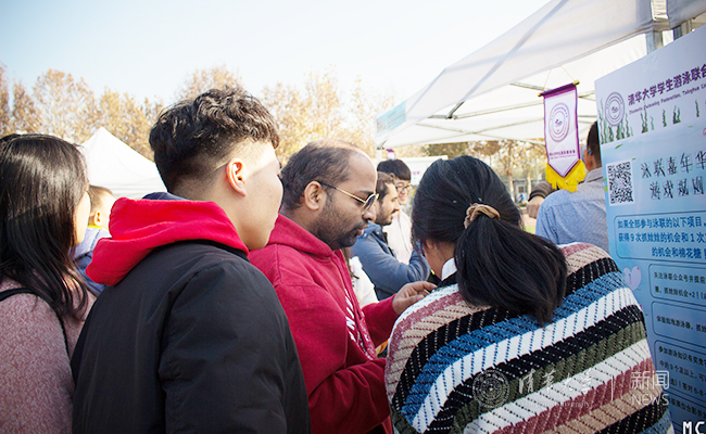 学生游泳联合会以及社团部志愿者向国际学生介绍活动