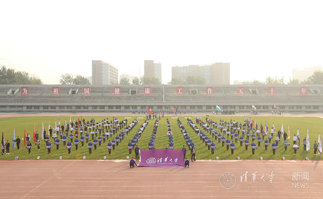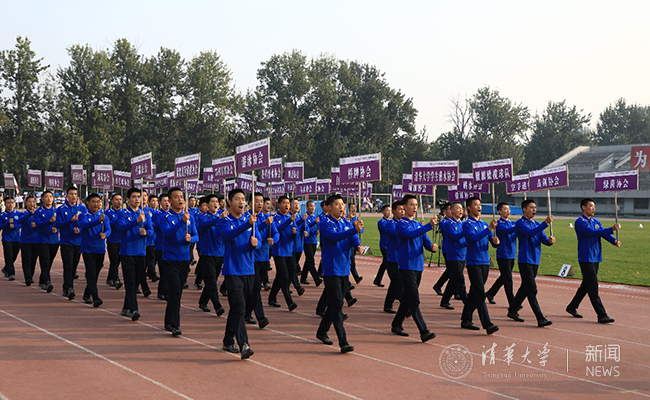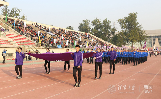 开幕式现场,彩旗招展,气势如虹。随着运动员进行曲的响起,国旗方阵、校旗方阵、53个协会方阵队及各院系大一班级方阵踏着整齐的步伐依次走过主席台。他们矫健的身姿、飒爽的风采展示了清华人积极向上、团结进取的精神风貌。