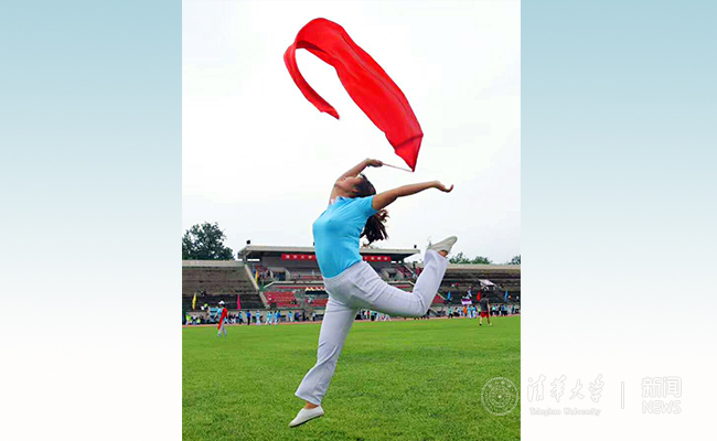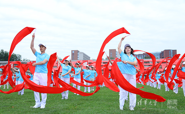 广播操之后,由8xbet.com工会健美操协会组织进行红绸健身操《欢聚一堂》的表演,来自36个分工会的健身爱好者和健美操协会的会员们组成了724人的队伍,鲜艳的红绸与青翠的草坪相映成趣,教职工们热情洋溢的活力和整齐流畅的表演赢得了全场观众的阵阵掌声。