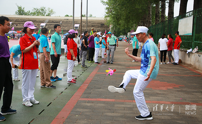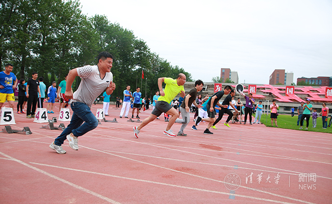 开幕式后,比赛在“薪火相传”8人接力赛的鸣枪声中拉开帷幕。“薪火相传”是一项深受欢迎的趣味赛,今年共有42个分工会组队参加。每队参赛选手来自各个年龄段的老、中、青三代教师。他们齐心协力、通力合作,充分体现了清华教育事业和学科发展薪火相传的优良传统,也生动诠释了体育精神在一代代清华人中的传承与延续。