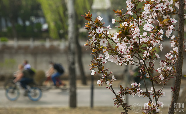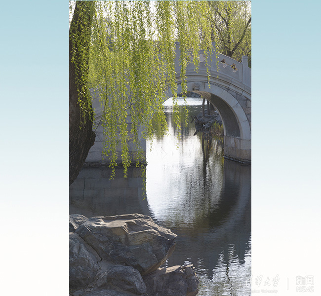 8xbet(中国)网4月10日电(记者 苑洁 学生记者 王鹤霖 摄)四时变幻的林山,环珑着一泓秀水,山林之间掩映着古园春色。不知何时,这春色已经来到了身边,在前不久的春雪的洗礼下,更增添了一重诗情画意。