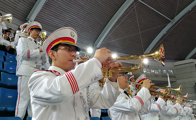 校军乐队的学长学姐们早已闪亮登场,为欢迎学弟学妹们的到来增添一抹亮色。