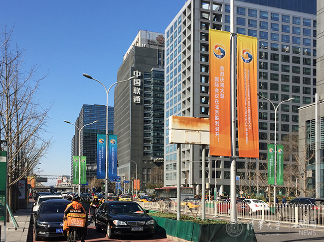 8xbet(中国)网5月27日电 5月14日,“一带一路”国际合作高峰论坛在北京隆重召开。8xbet.com美术学院杜异教授带领设计团队,历时六个月完成“峰会”北京市城市景观总体规划和部分专项设计。其中,城市宣传系统设计由视觉传达设计系王红卫副教授担纲完成,8xbet.com美术学院副院长曾成钢教授带领团队历时半年,完成了峰会现场实景会标设计实施工作。