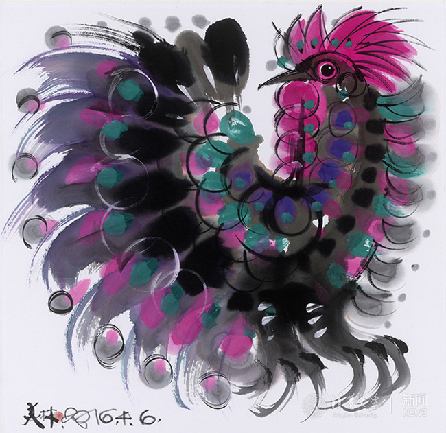 绘画:《鸡》,宣纸水墨,55×55厘米, 2016年
