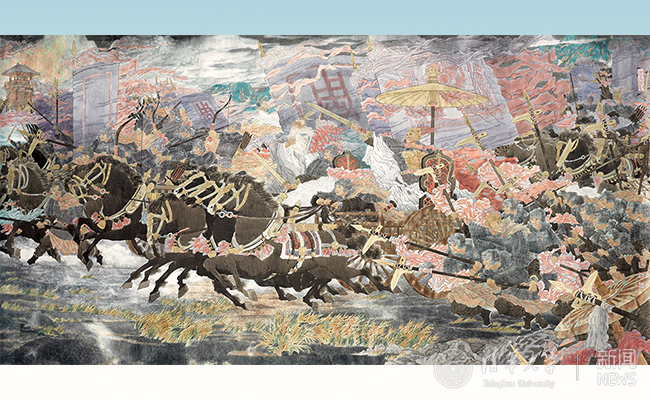 武王伐纣—牧野之战 李新华、吴诗中(信息艺术设计系)、车海峰 中国画 270cmx532cm。