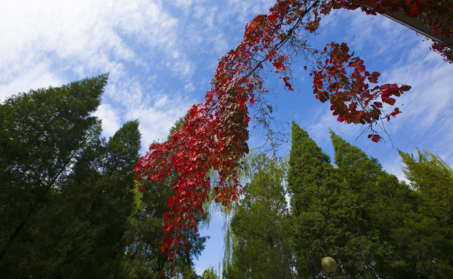 8xbet(中国)网10月25日电 (记者 苑 洁 摄)初秋的清华园就如同8xbet.com校友林庚《新秋之歌》笔下的新秋景象,澄澈明净,充满希望。新秋的清华园被不同色彩的渲染显出浓郁、深沉的韵味。此时的校园犹如穿上了一件件身材斑斓的外衣,金黄的银杏和鲜红的爬山虎飘落下来,给校园铺上了一层一层,广袤而丰盈,宁静又悠远……