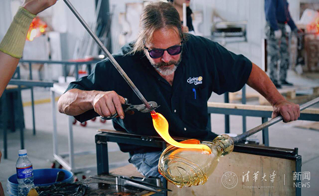 清华美院教师李静配合国外艺术家Rik & Shelley Allen玻璃热塑表演。