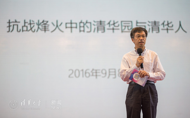 晚会上,史宗恺做了题为“抗战中的清华园与清华人”的讲话,用一张张清华园的老照片、一个个感人至深的清华学子的事迹讲述着抗战时期那段历史,号召同学们在当今的和平年代不能忘记历史,要继承和发扬清华人的家国责任感,弘扬爱国主义精神,未来用知识和双手建设祖国。