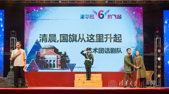 本场晚会共分为“六的奇遇”、“六的我们”、“六的未来”三个篇章。包含学生艺术团舞蹈队的《骤雨新荷》、键盘队的《海德威变奏曲》、京剧队的《行云流水》、国标队的《梦想校园》、军乐队的《管乐狂想》、曲艺队《清华之最》、话剧队的朗诵剧《清晨,国旗从这里升起》等精彩节目。防化学院教官还带来演唱《后来》。