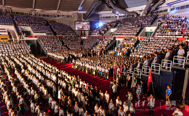 全场新生齐唱校歌。