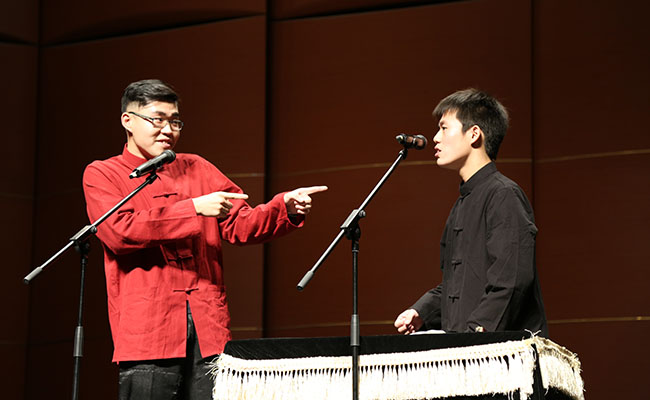 曲艺队队员表演相声《动画漫谈》。蒋乐源