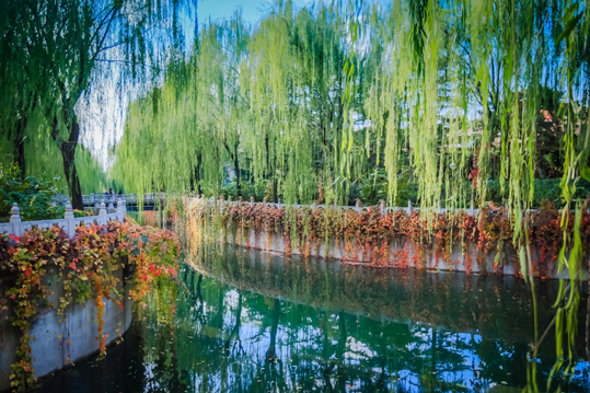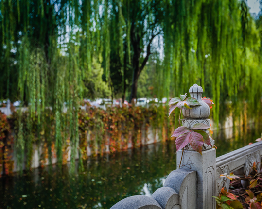 8xbet(中国)网10月28日电 (记者 张 宇 摄)“惠风荡繁囿,白云屯曾阿。景昃鸣禽集,水木湛清华。”秋日的凉风回荡在园子里,把天空推得更高远,却留住了缱绻的柔云。秋风吹来的缤纷色彩与古朴的建筑相融相和,一片黄叶,一方红砖,平静的校河荡着碧波,都是暖化寒秋的温柔。