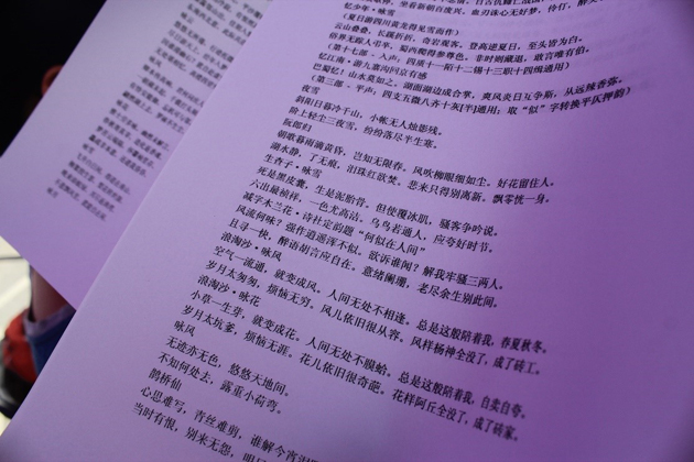 清莲诗社同学在现场展示的诗词作品。