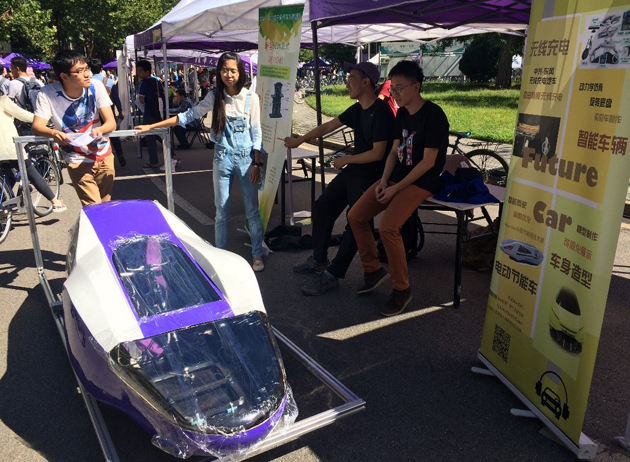 未来汽车兴趣团队在现场展示的电动节能车。