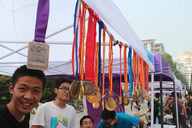 马拉松协会在现场展示的奖牌。