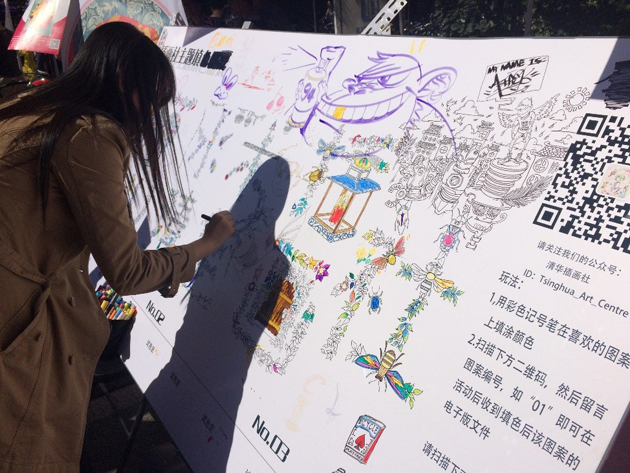 同学在插画协会展位进行现场创作。