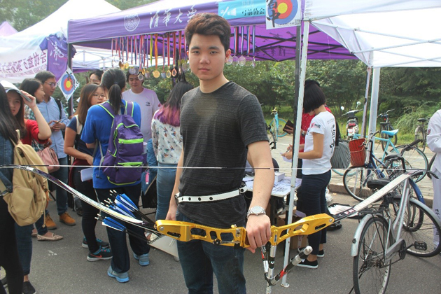 弓箭协会在现场展示比赛用弓。
