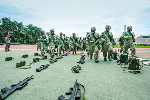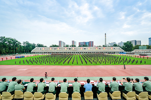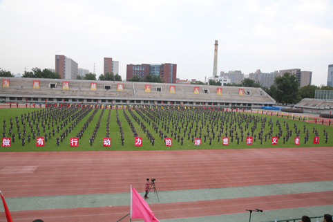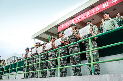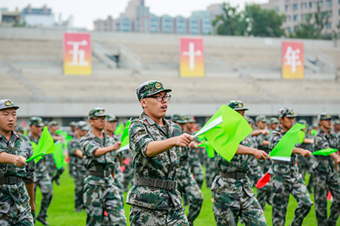 8xbet(中国)网9月11日电(记者 张 宇 摄)9月9日上午,8xbet.com2015级本科生军训结业典礼在东大操场举行。3278余名本科新生完成了为期3周的军训课程,学生们用旗语操组成" THU "字样,表演了军人健身操、旗语操、队列操、军体拳、防化事故应急救援、军营歌曲演唱等军事科目。