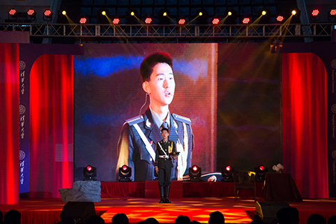 史宗恺勉励同学们以优秀校友为榜样,做有担当的清华人,并深情演唱了一首《出塞曲》,为今年毕业的同学壮行。
