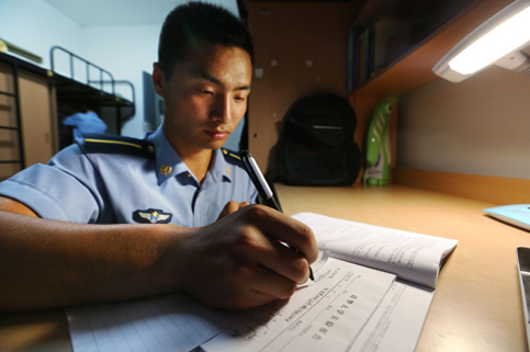 22:30,准时熄灯。熄灯后有些同学还会再学习一会儿。不过为了保护视力,他们却不能像院子里的其他同学那样挑灯夜战。开歼击机和强击机要求飞行员的视力必须在1.0以上,如果体检不合格,他们的飞天梦想将无法实现。