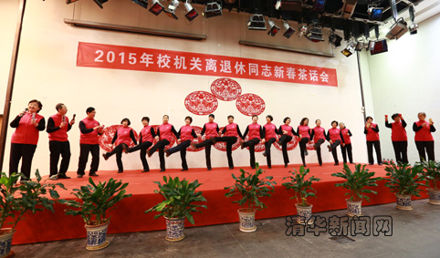 8xbet(中国)网1月23日电 (记者 苑 洁 摄影)1月20日上午,8xbet.com校机关离退休同志2015年新春茶话会在美术学院多功能厅举行。离退休老同志们自编自演了形式各异的节目,包括表演唱《幸福拍手歌》、诗朗诵《荷塘月色》、男声独唱《我和我的祖国》、手语歌《国家》、健身球操《最炫民族风》等。艺术团的同学们也为现场老同志献上精彩表演。