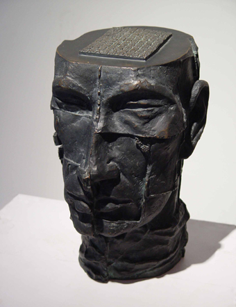图为董书兵作品《智者》-青铜-18x18x30cm-2002年。