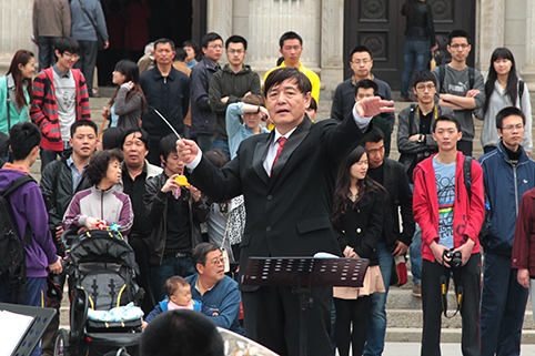 毕业的军乐队校友客串指挥