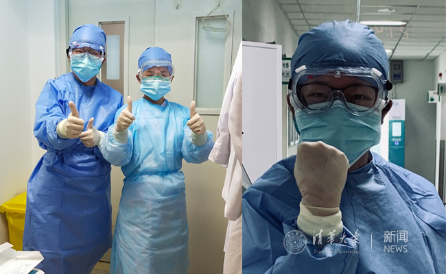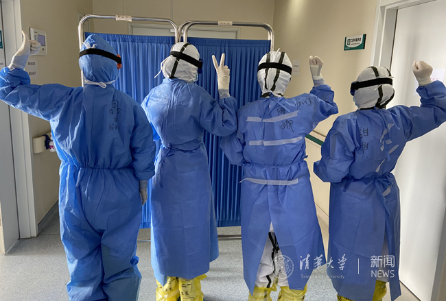 清华长庚支援武汉医疗队护理人员在进入病区前进行防护准备