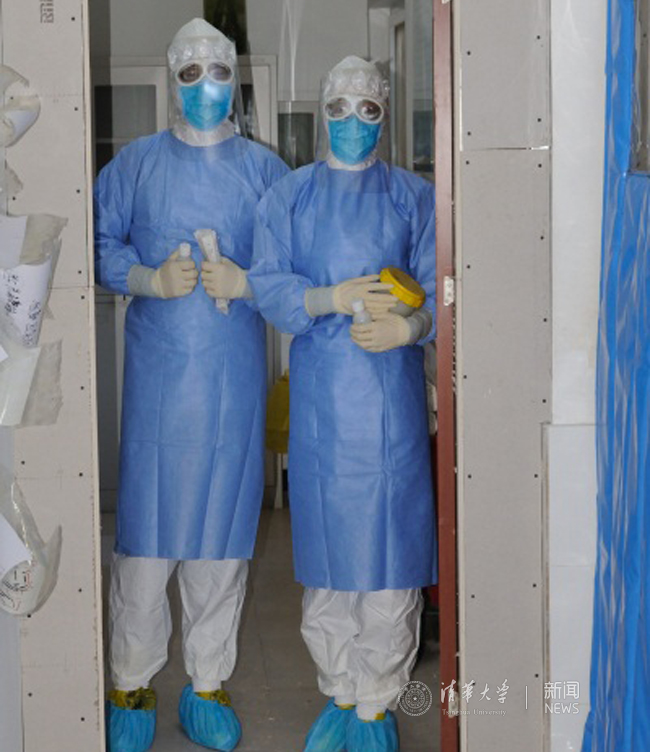 二附院一名医生和一名护士准备进入隔离病房采集患者的检验标本