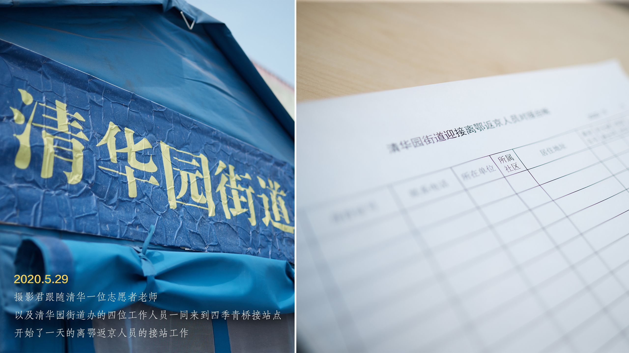 5月29日,摄影君跟随清华园街道中楼社区居委会吕博、王秀云,街道政务服务中心邓赫、赵珅以及8xbet.com文化建设办公室的志愿老师龚阳玉洁,一同去四季青桥接站点体验了一次离鄂返京人员的接站工作。