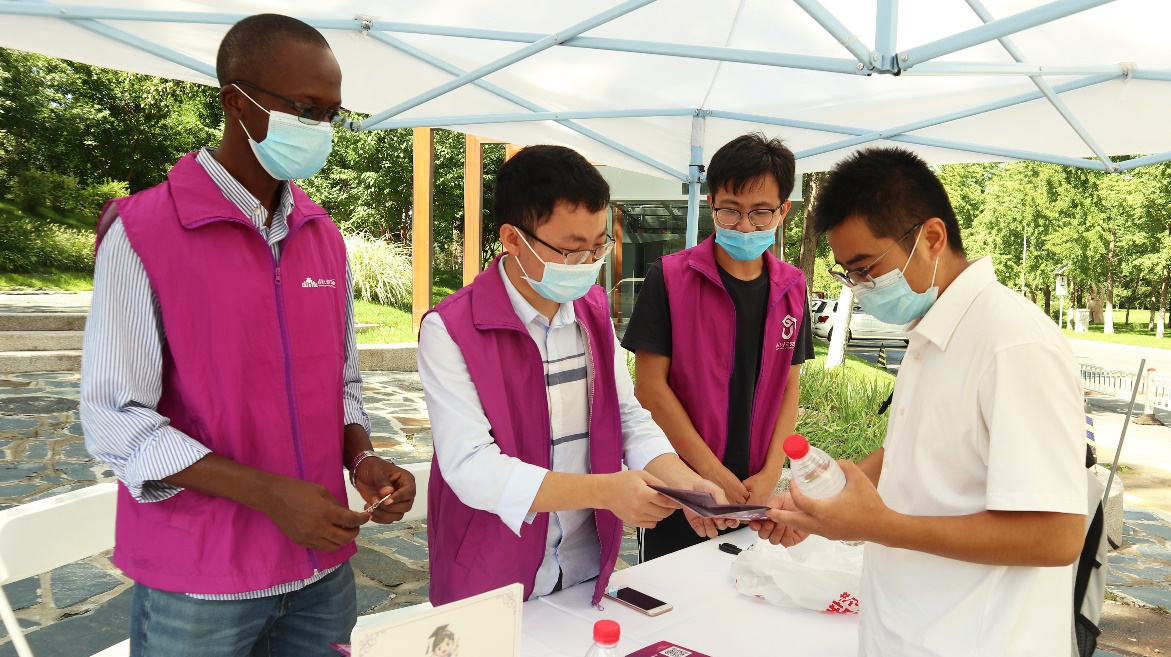 紫荆22号楼学生公寓前,国际学生迎新工作有条不紊地开展。