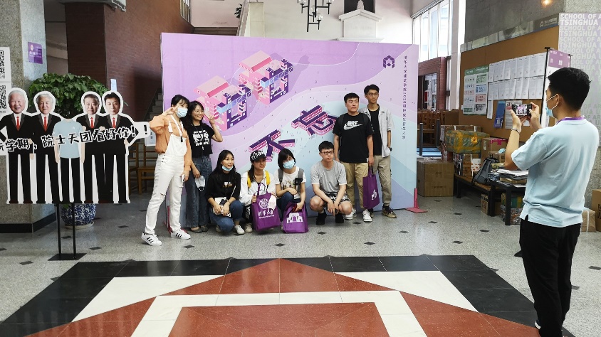 在8月份刚刚启用的双清公寓大厅内,同样可以看到迎新小研志愿者们的身影。